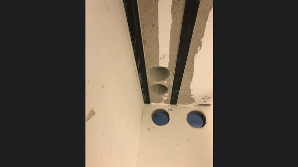 Förstärkning av nya håltagningar i 6 lägenheter. Augusti 2018.